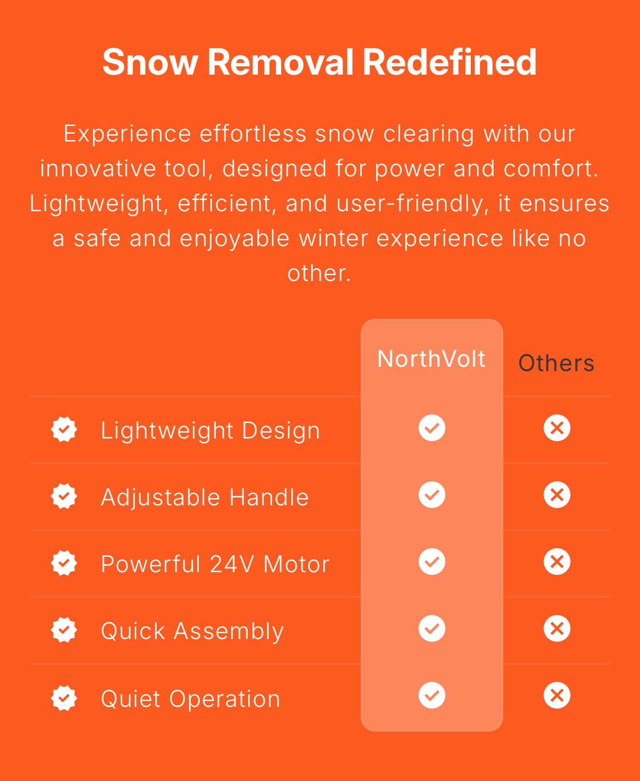 ❄️【Built For Winter – Quality You Can Trust】NorthVolt is committed to outstanding performance and durability. This cordless snow shovel undergoes rigorous testing—including stress, drop, and motor idling tests—to ensure long-lasting reliability in harsh winter conditions. A great choice for your home or as a thoughtful holiday gift, it shows you care.